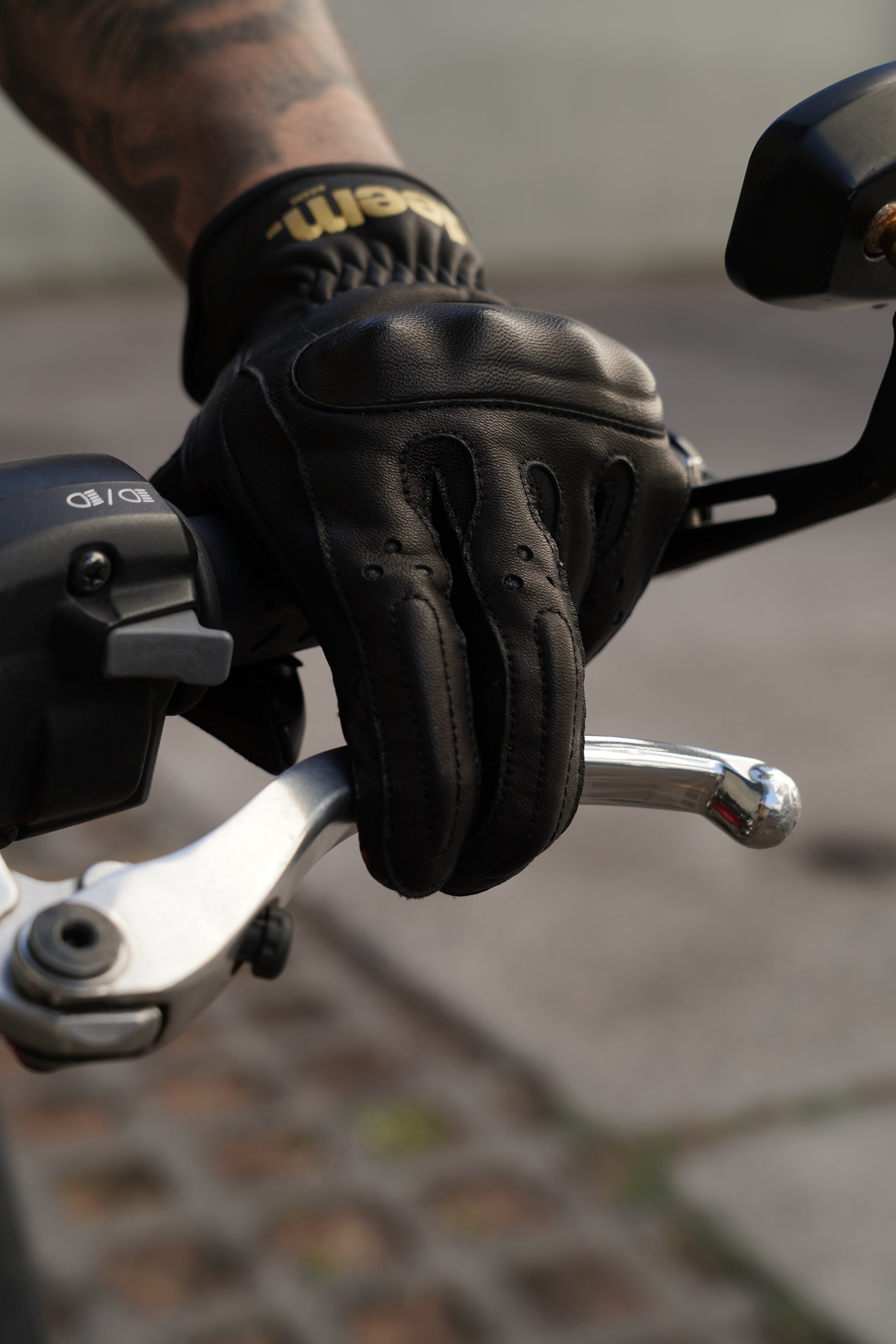 Guante 100% cuero, negro: Limpio, sobrio y con toda la actitud. Ideal para la ciudad o carretera. Pura presencia sin exceso.