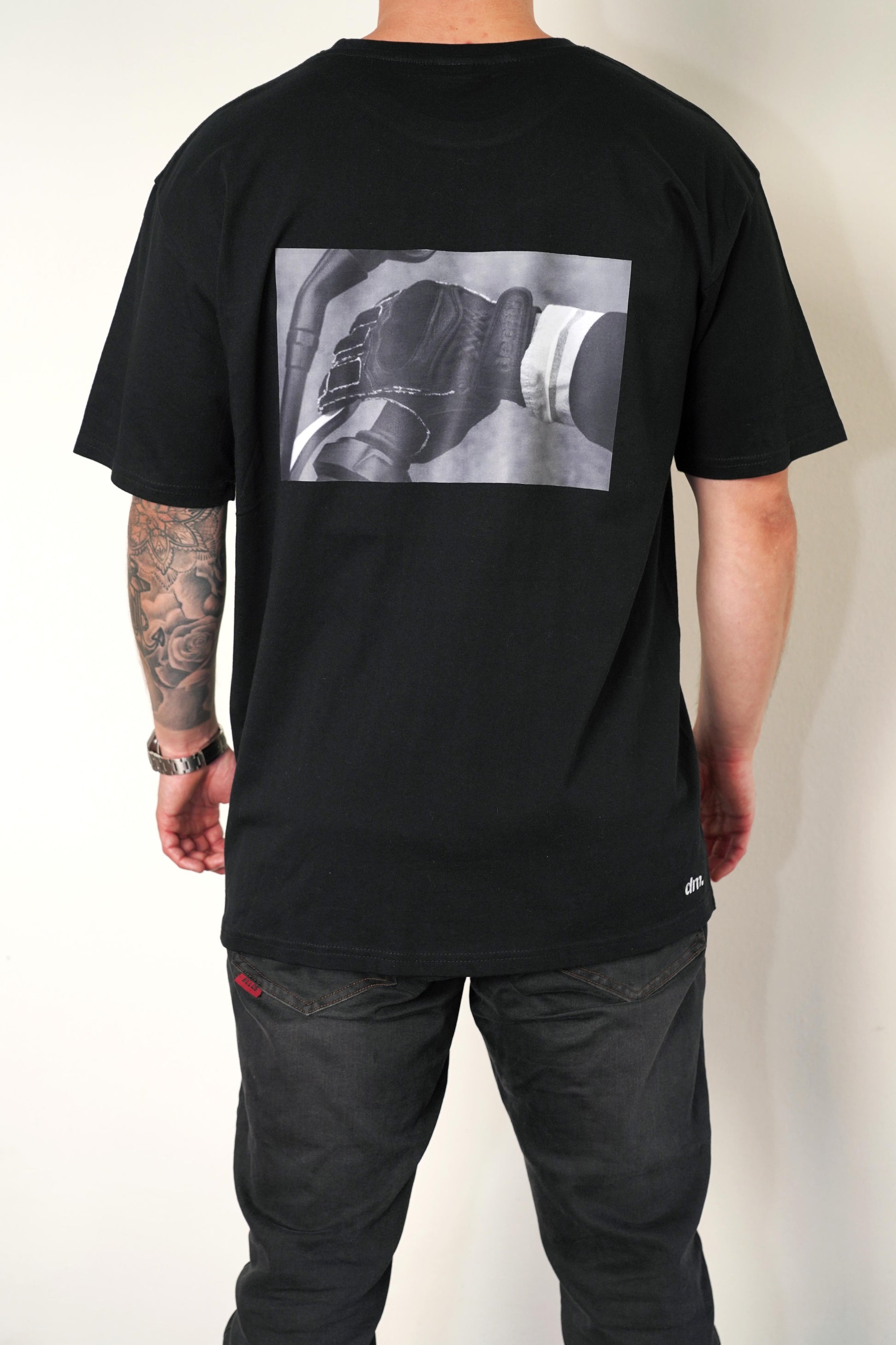 Polera 100% algodón, negra: Un llamado a acelerar sin mirar atrás. En el frente, “Throttle up” como grito de partida. En la espalda, el guante acelerando. Diseñada para los que no frenan.